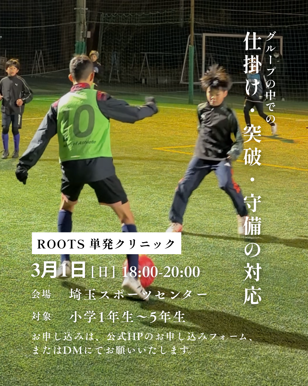 ROOTSは、試合で活躍できる選手を育成するためのジュニアサッカースクールです。